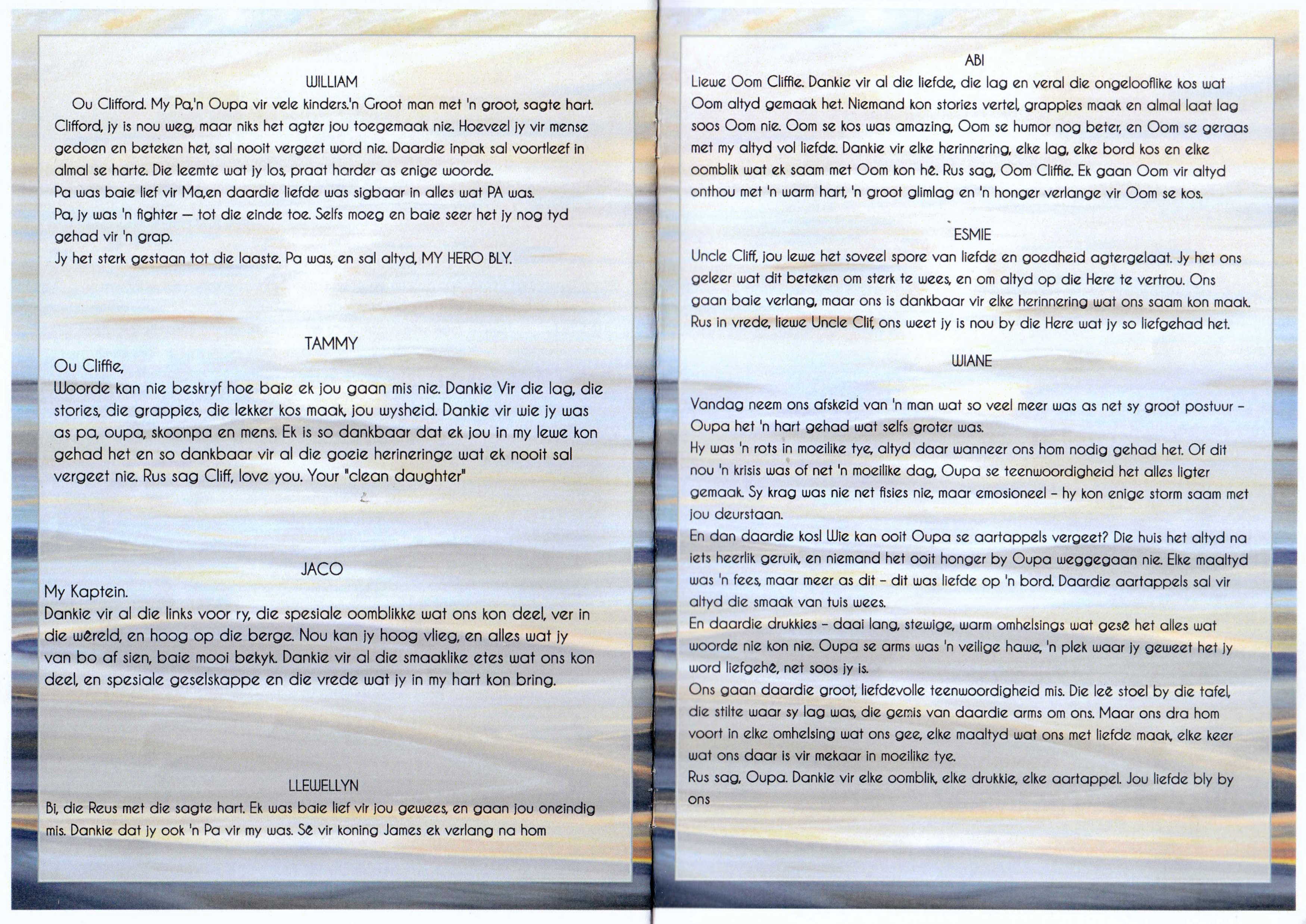 Funeral Programs / Begrafnisbriewe