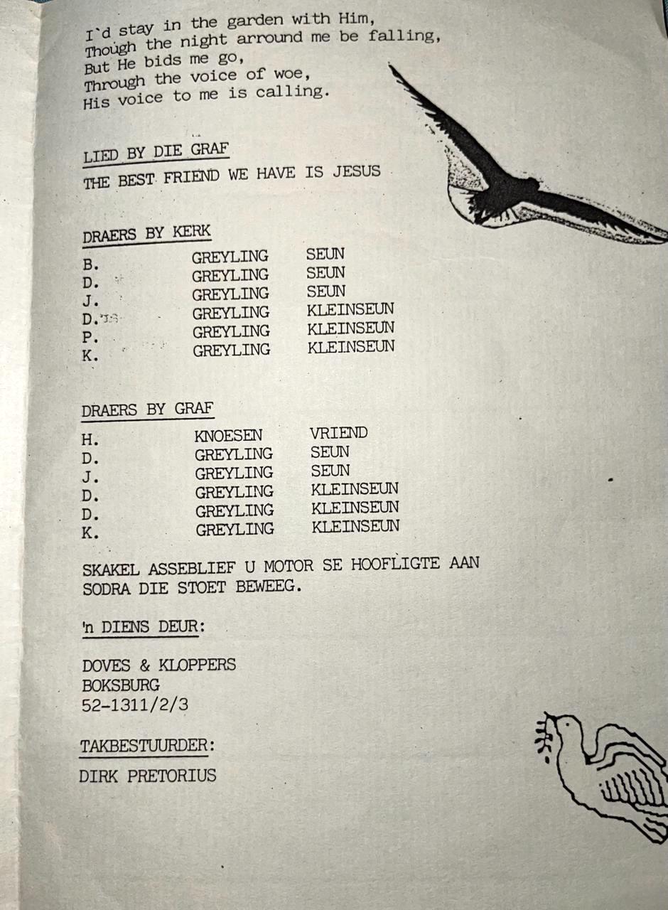 Funeral Programs / Begrafnisbriewe