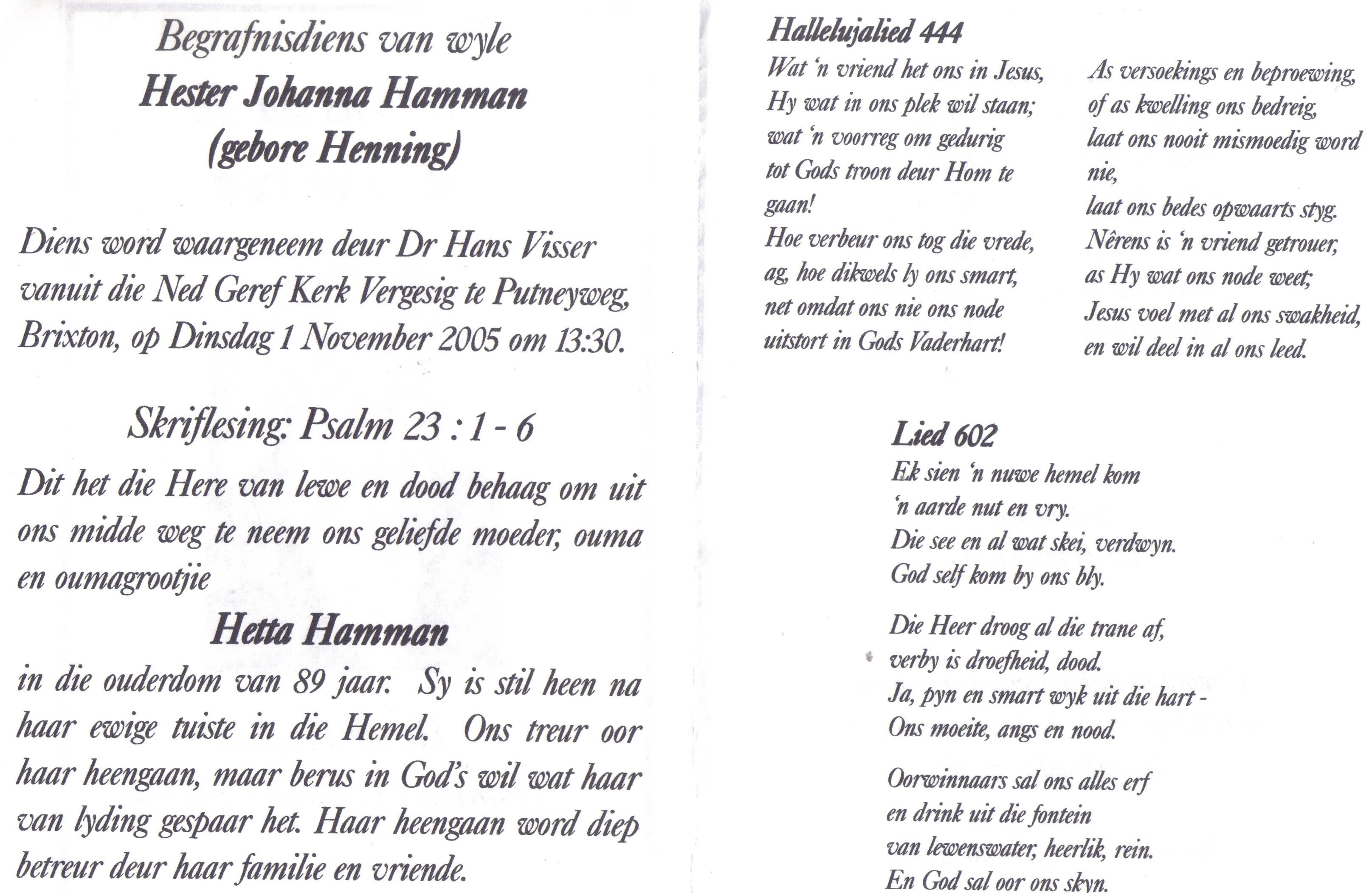 HAMMAN-Hester-Johanna-Nn-Hetta-nee-Henning-1916-2005-F
