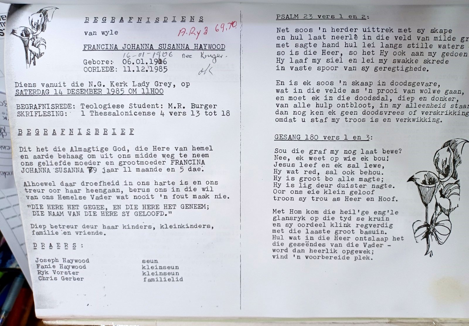 Funeral Programs / Begrafnisbriewe