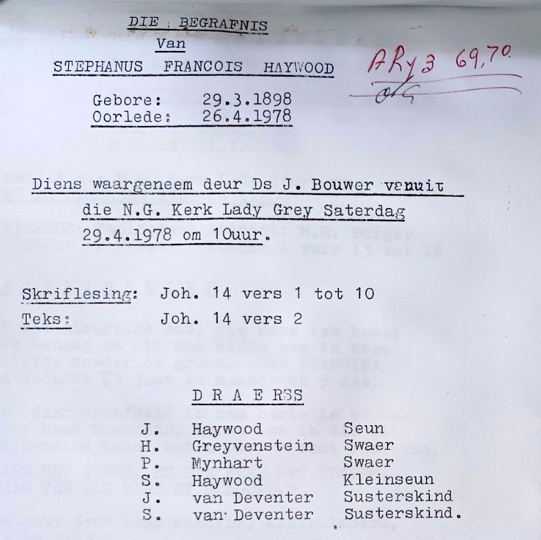 HAYWOOD-Stephanus-Francois-1898-1978-M