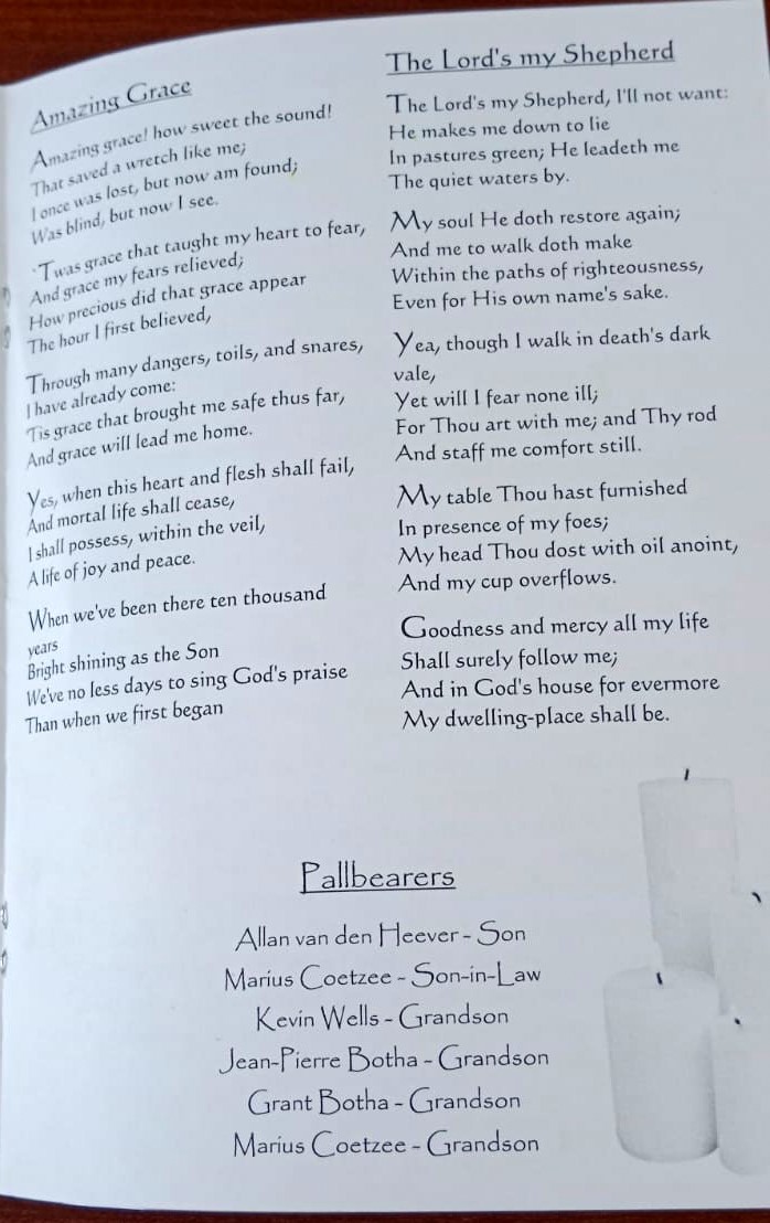 Funeral Programs / Begrafnisbriewe