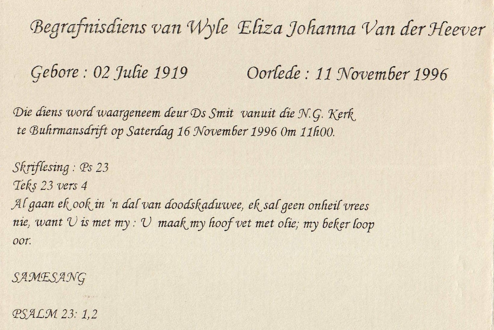 Funeral Programs / Begrafnisbriewe
