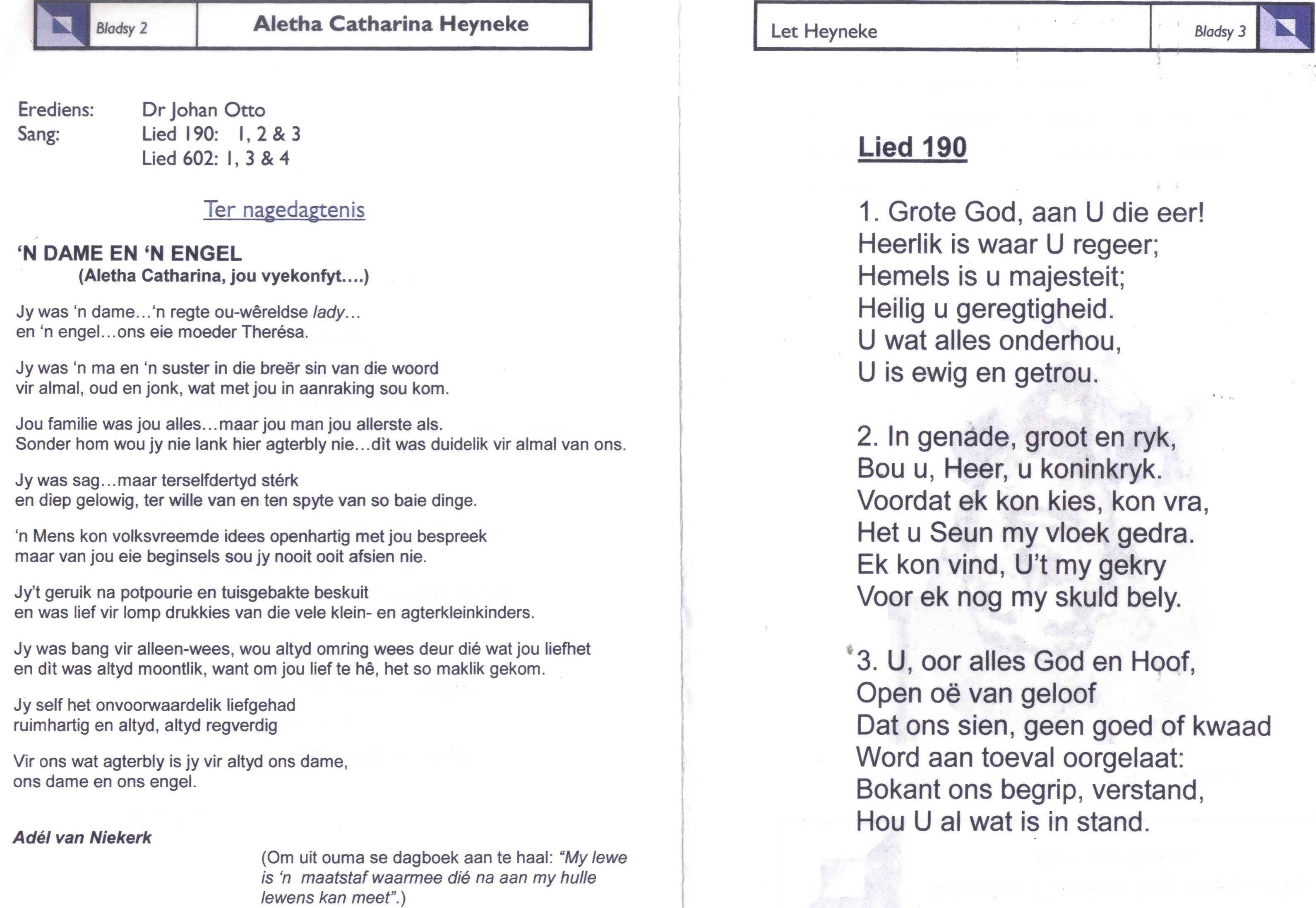 Funeral Programs / Begrafnisbriewe
