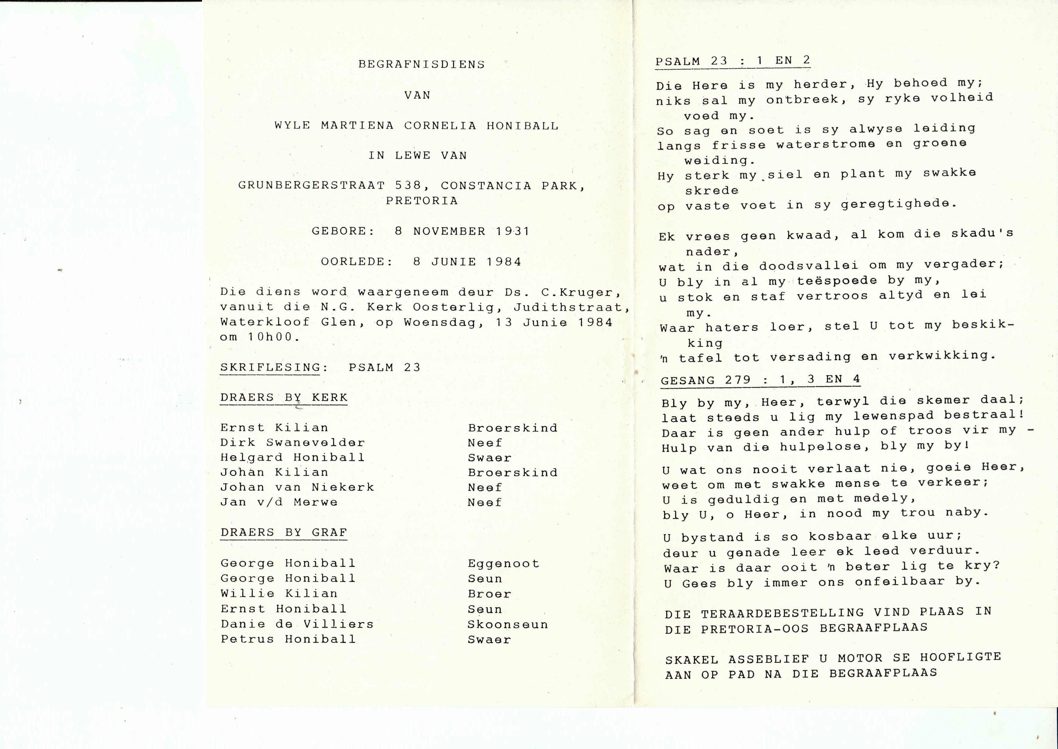 Funeral Programs / Begrafnisbriewe