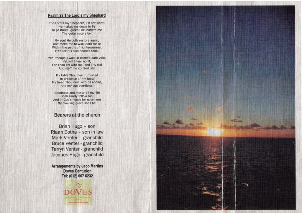 Funeral Programs / Begrafnisbriewe