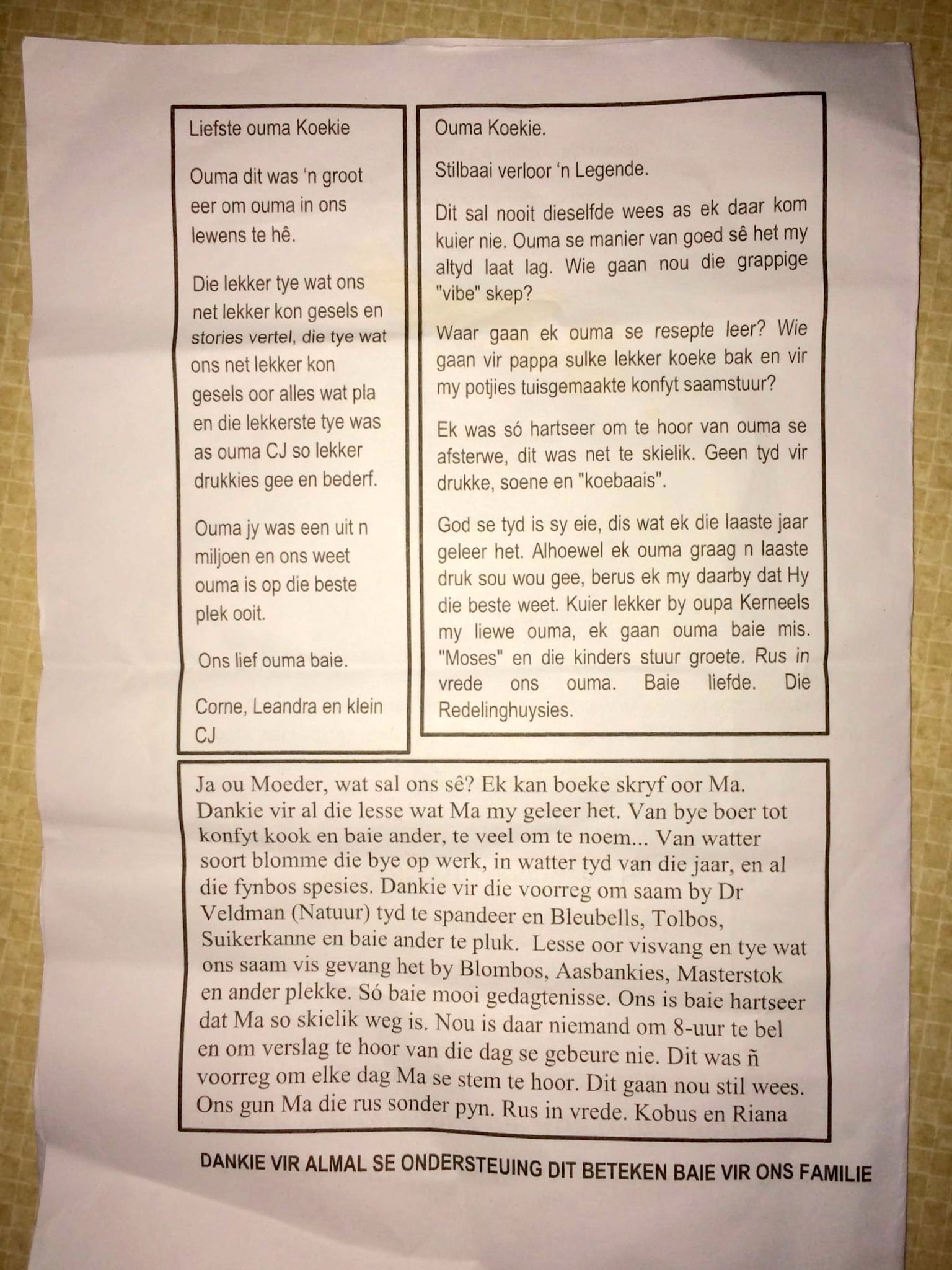 Funeral Programs / Begrafnisbriewe