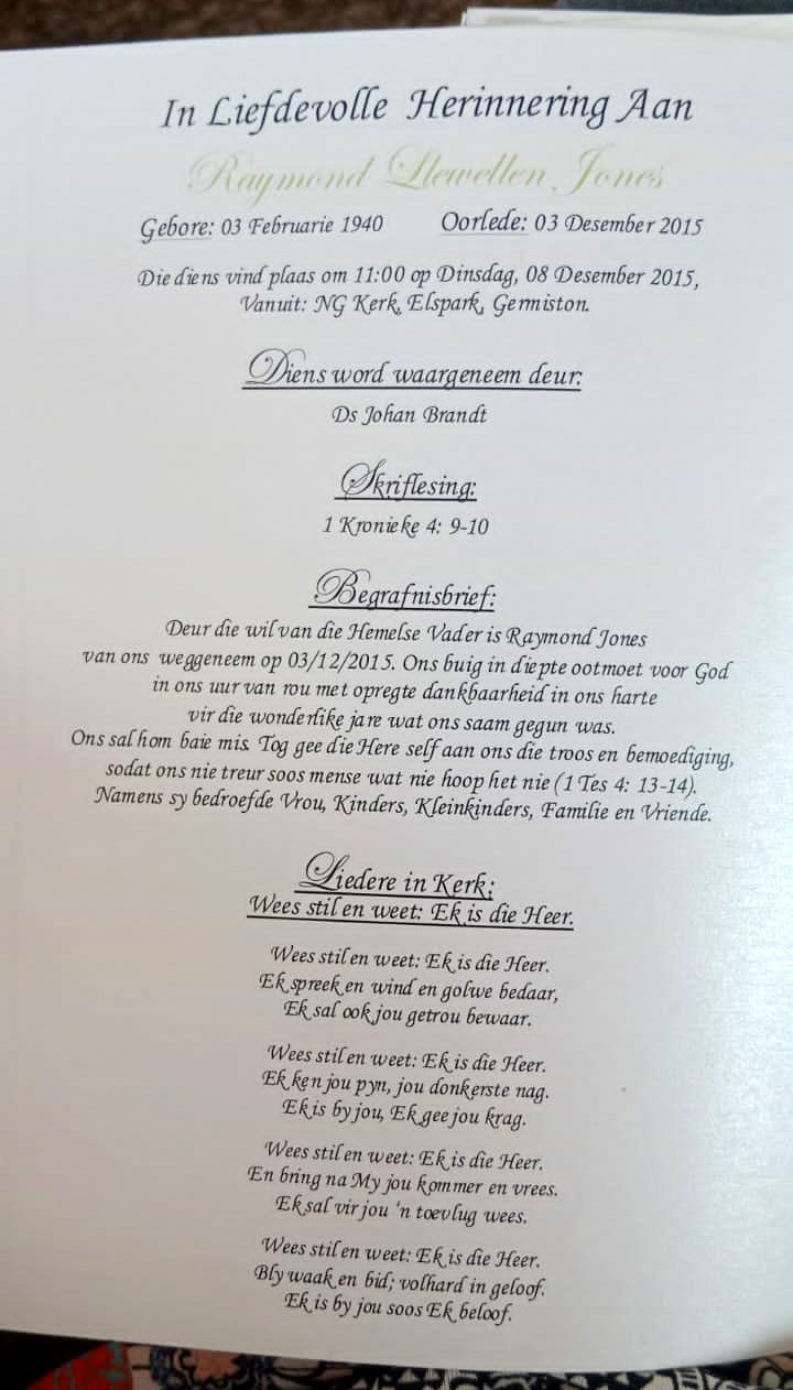 Funeral Programs / Begrafnisbriewe