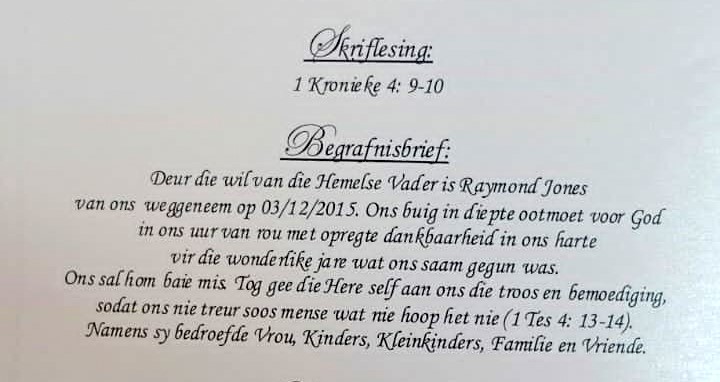 Funeral Programs / Begrafnisbriewe