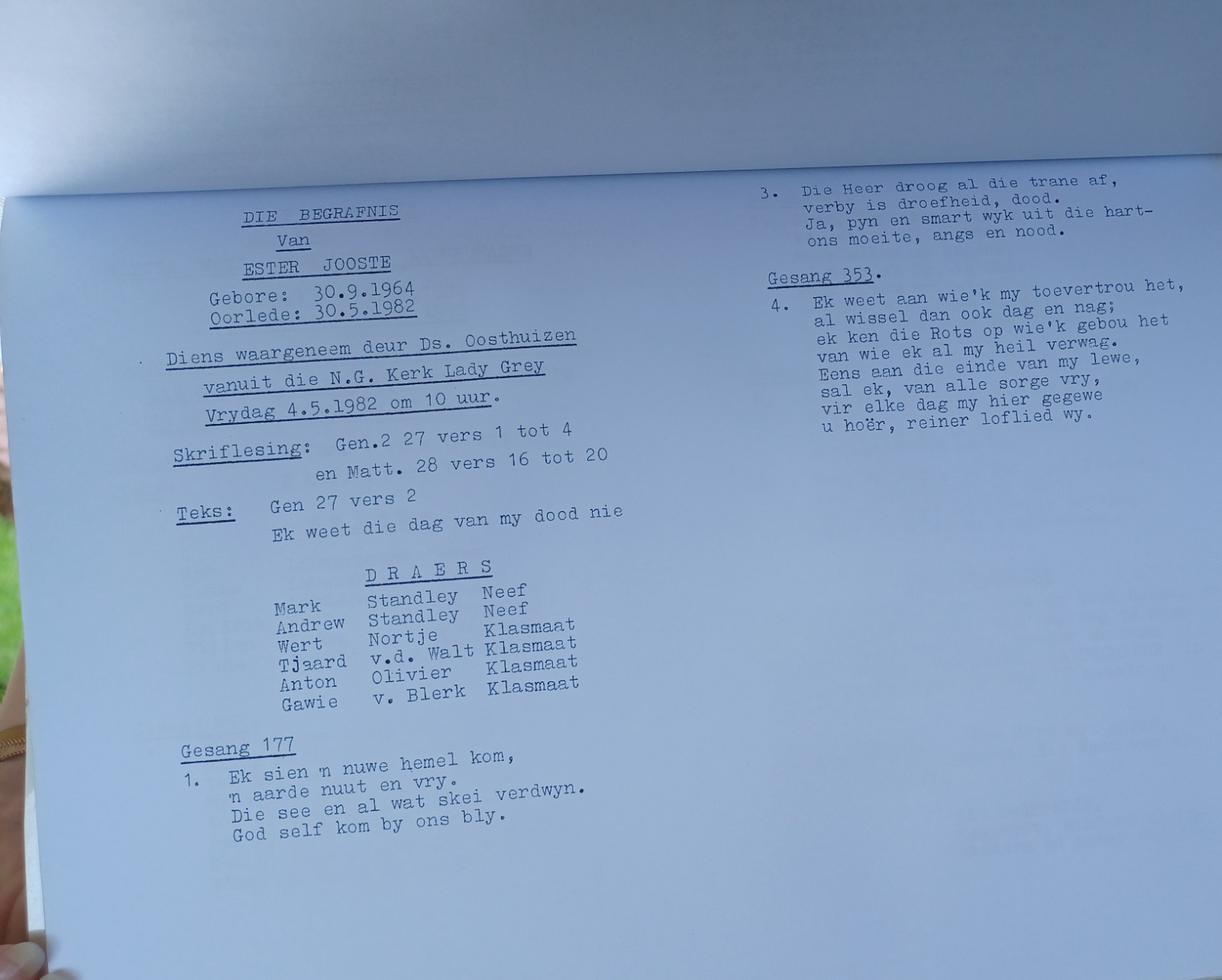 Funeral Programs / Begrafnisbriewe