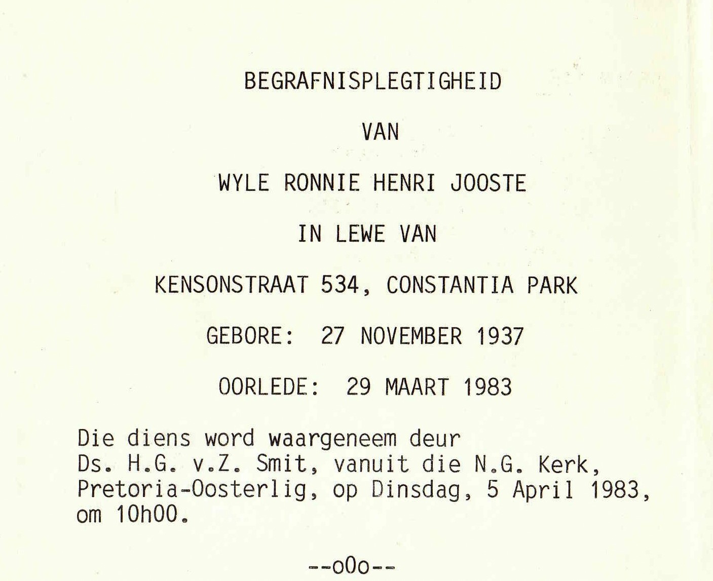 JOOSTE-Ronnie-Henri-1937-1983-M