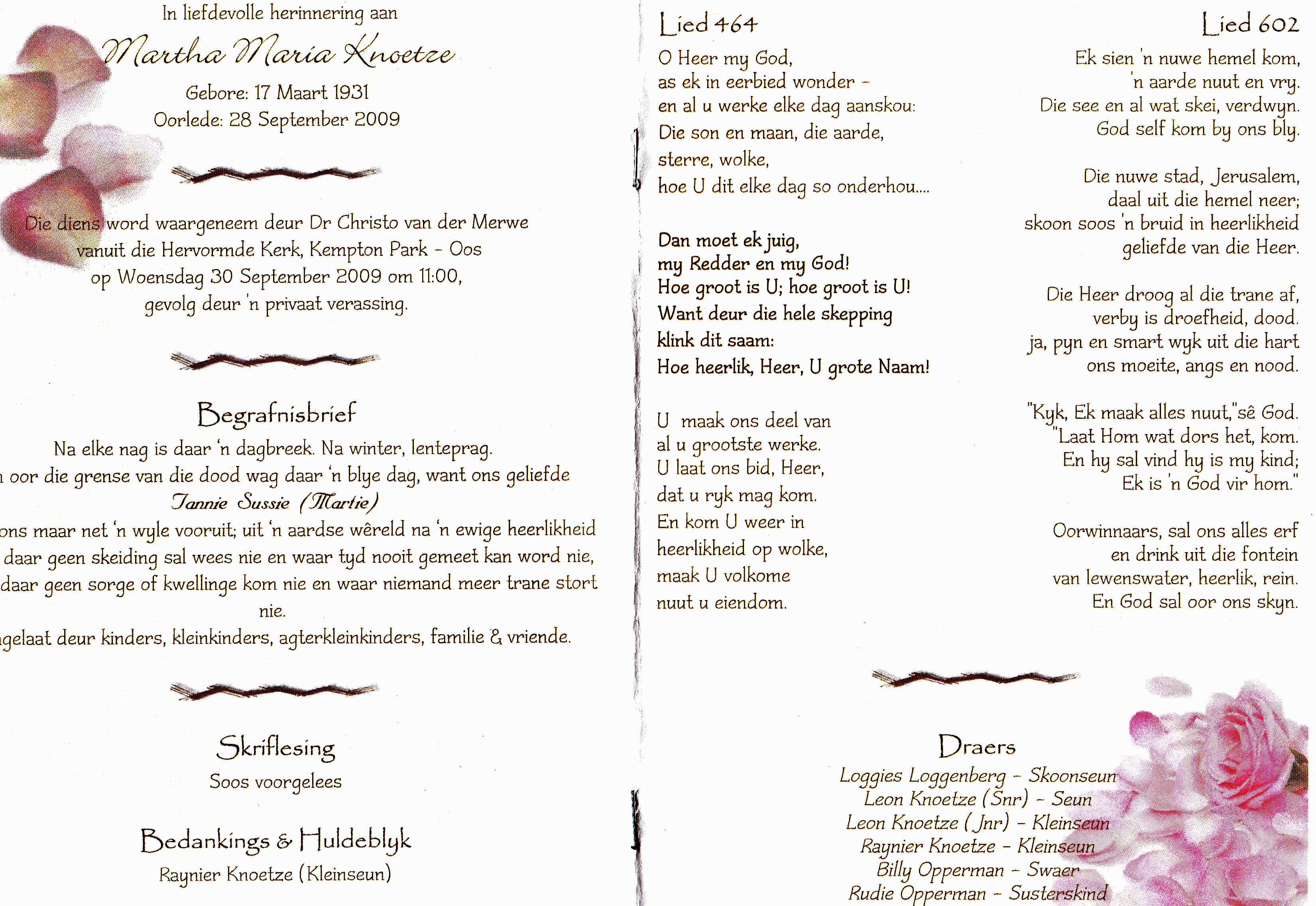 Funeral Programs / Begrafnisbriewe