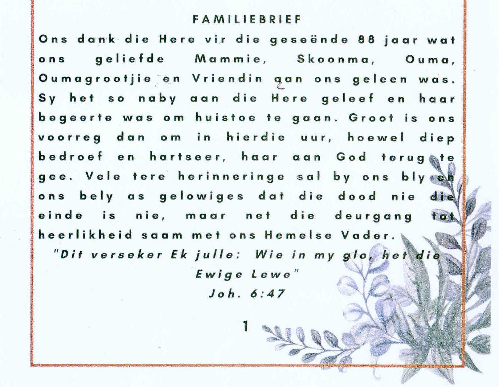 Funeral Programs / Begrafnisbriewe
