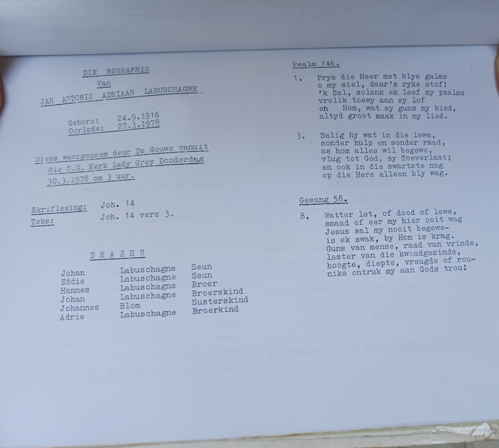 Funeral Programs / Begrafnisbriewe