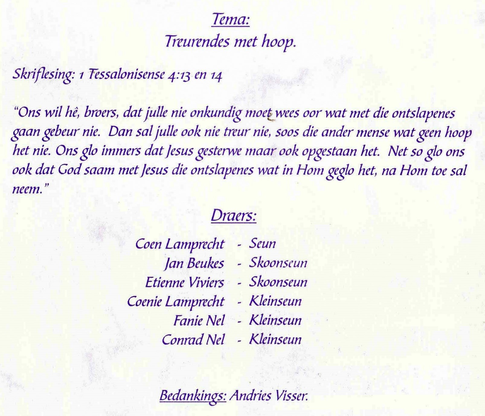 Funeral Programs / Begrafnisbriewe