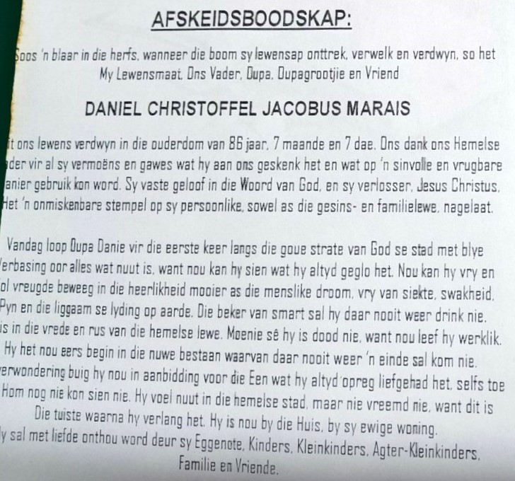 Funeral Programs / Begrafnisbriewe