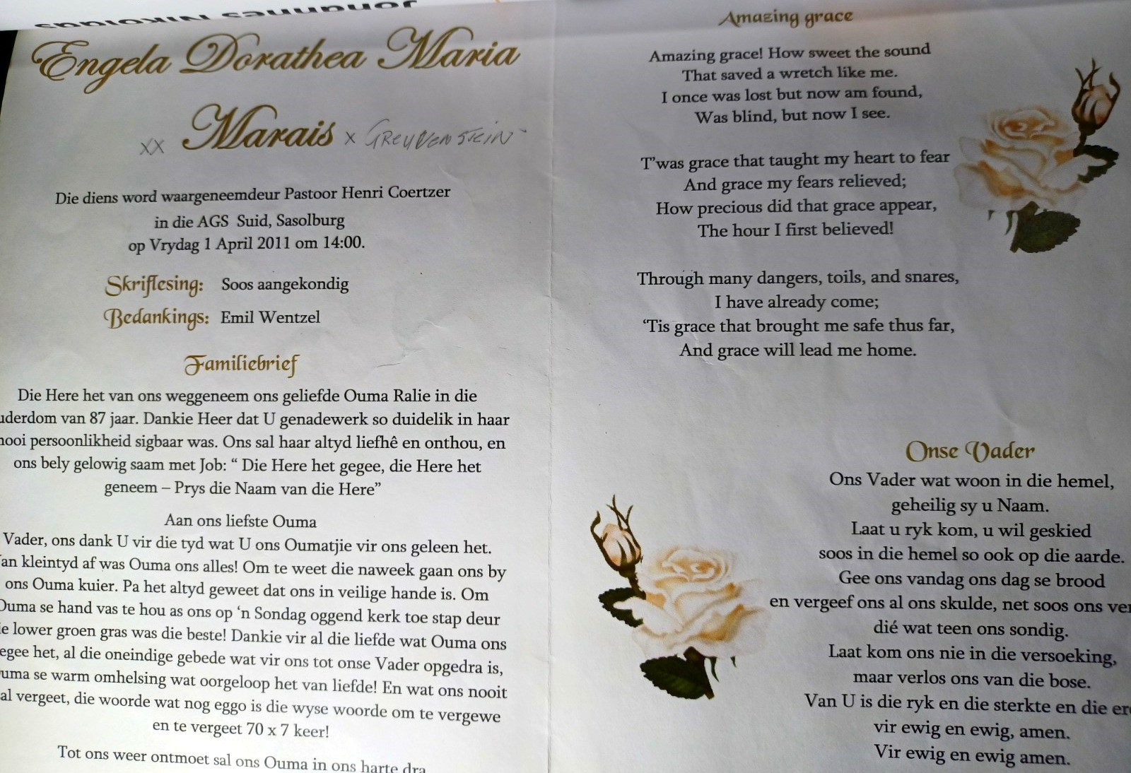 Funeral Programs / Begrafnisbriewe