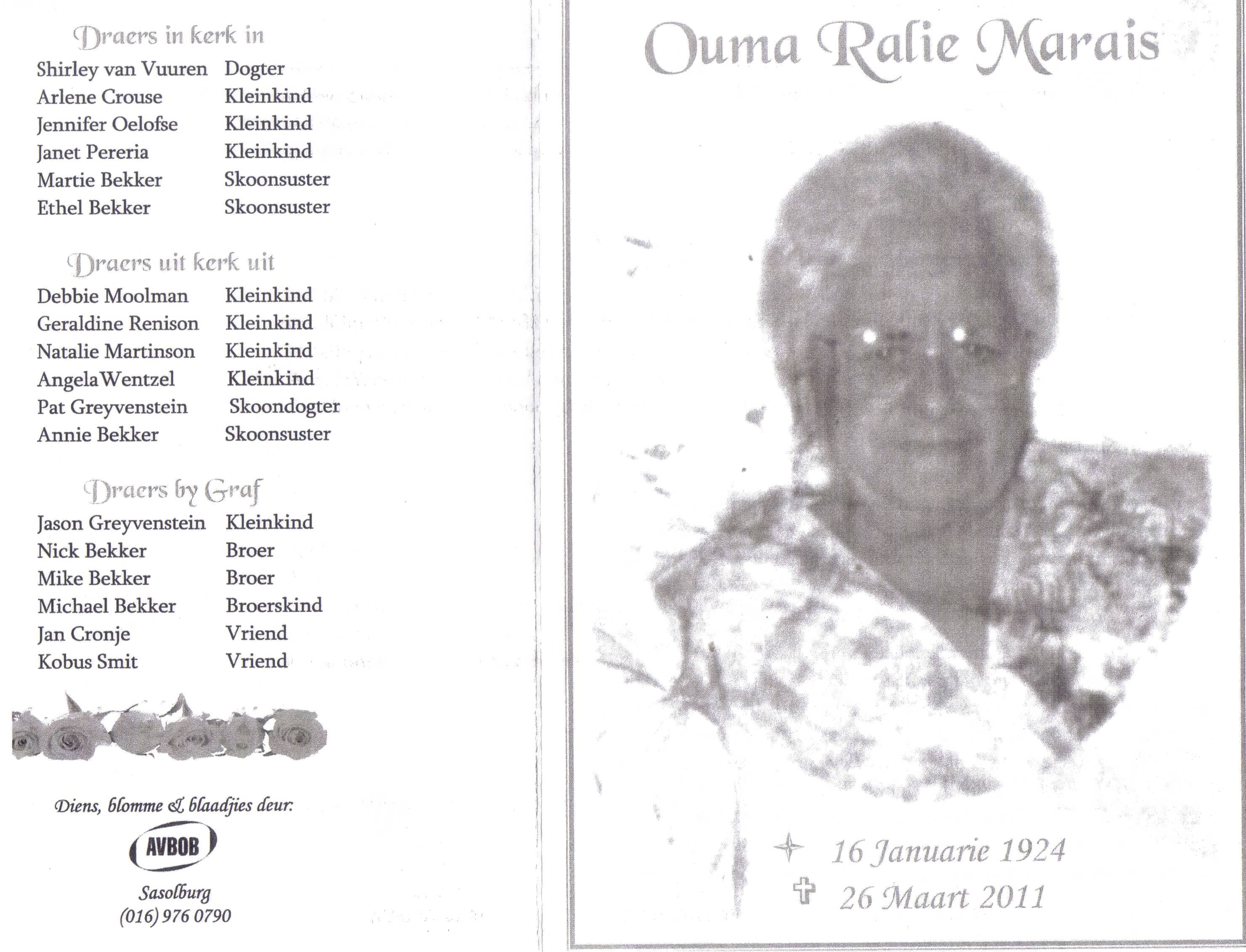 MARAIS-Engela-Dorathea-Maria-nee-Bekker-Nn-Ralie-nee-Bekker-X-Greyvenstein-1924-2011-F
