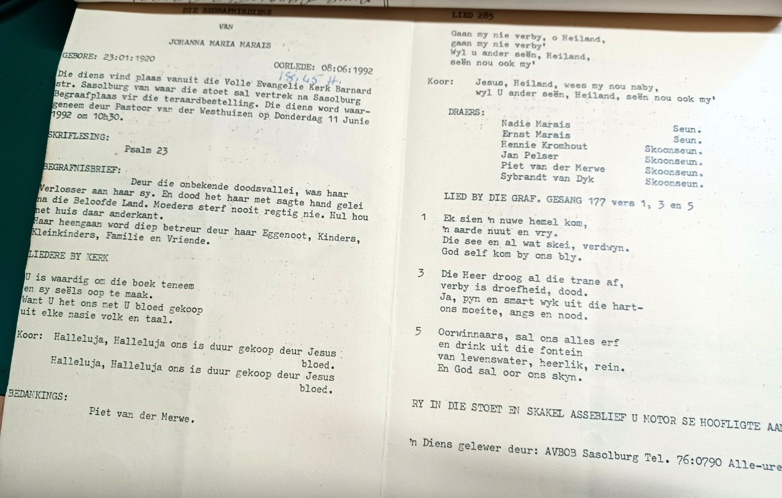 Funeral Programs / Begrafnisbriewe