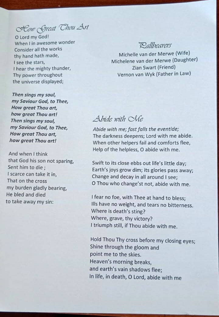 Funeral Programs / Begrafnisbriewe