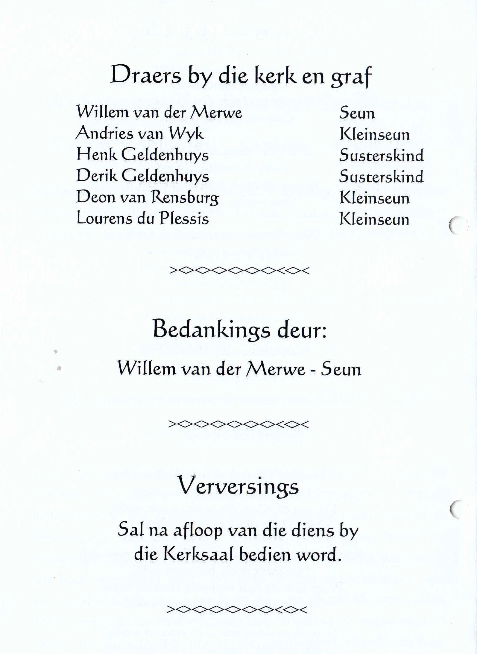 Funeral Programs / Begrafnisbriewe