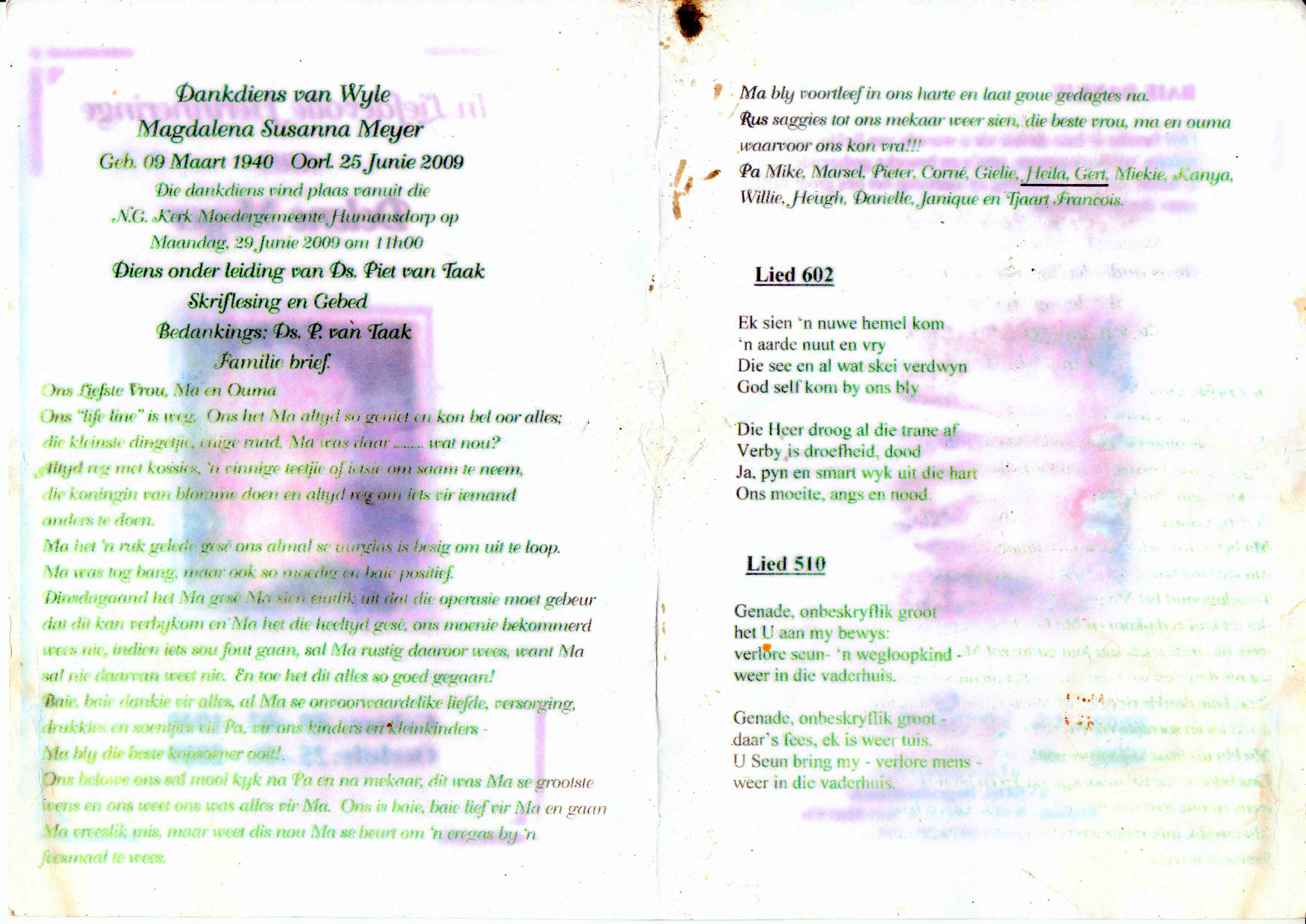 Funeral Programs / Begrafnisbriewe