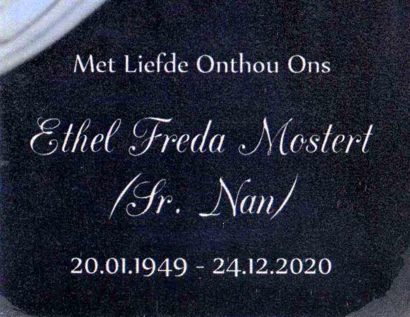 MOSTERT-Ethel-Freda-Nn-SrNan-1949-2020-Sister-F