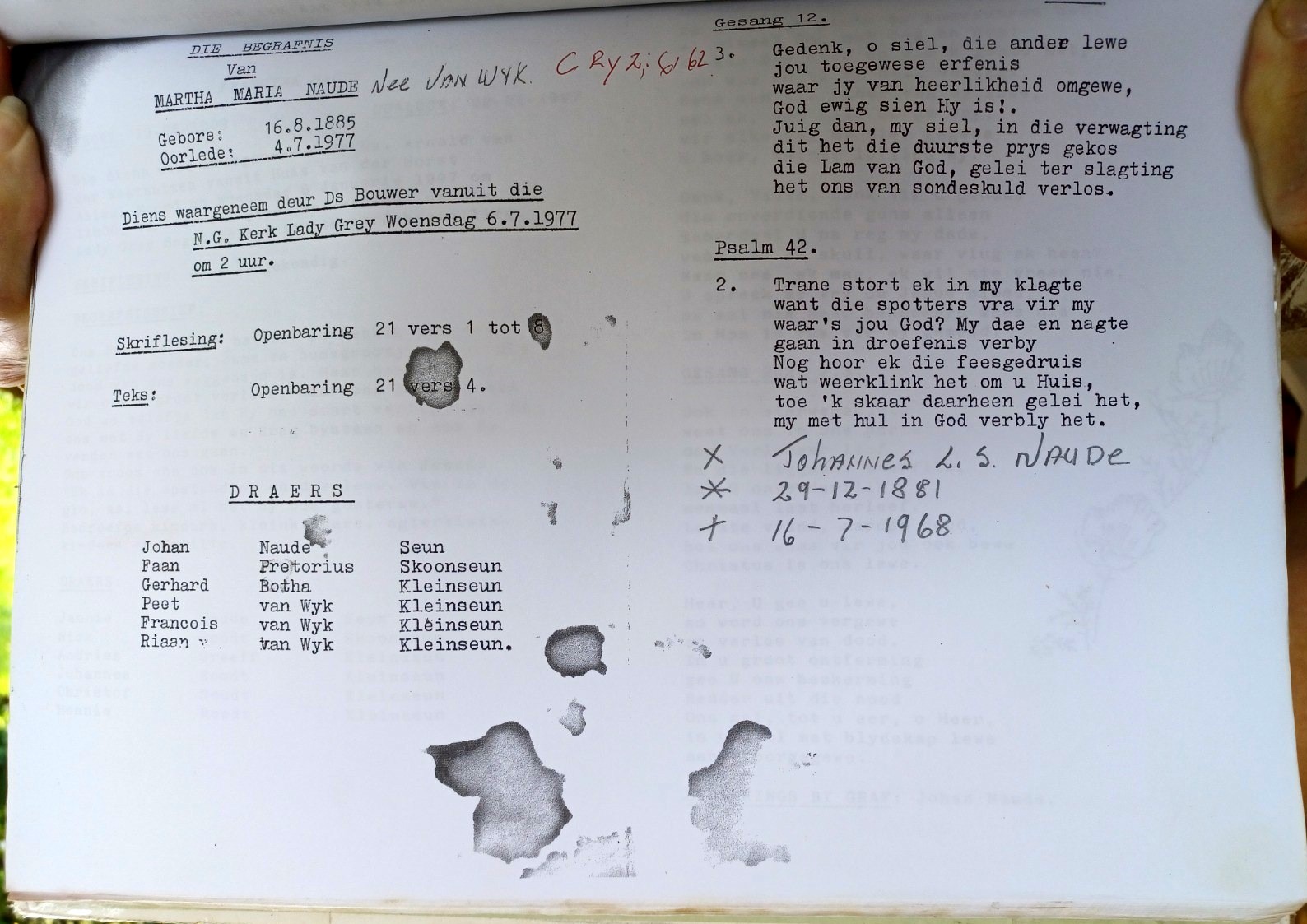 Funeral Programs / Begrafnisbriewe