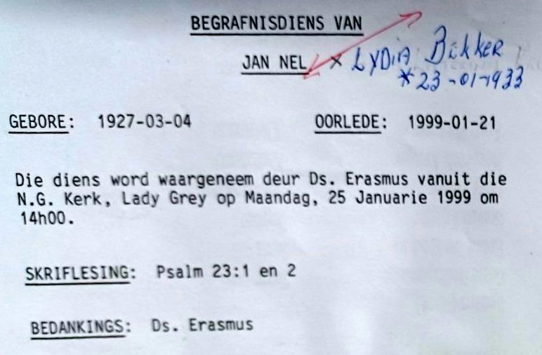 Funeral Programs / Begrafnisbriewe