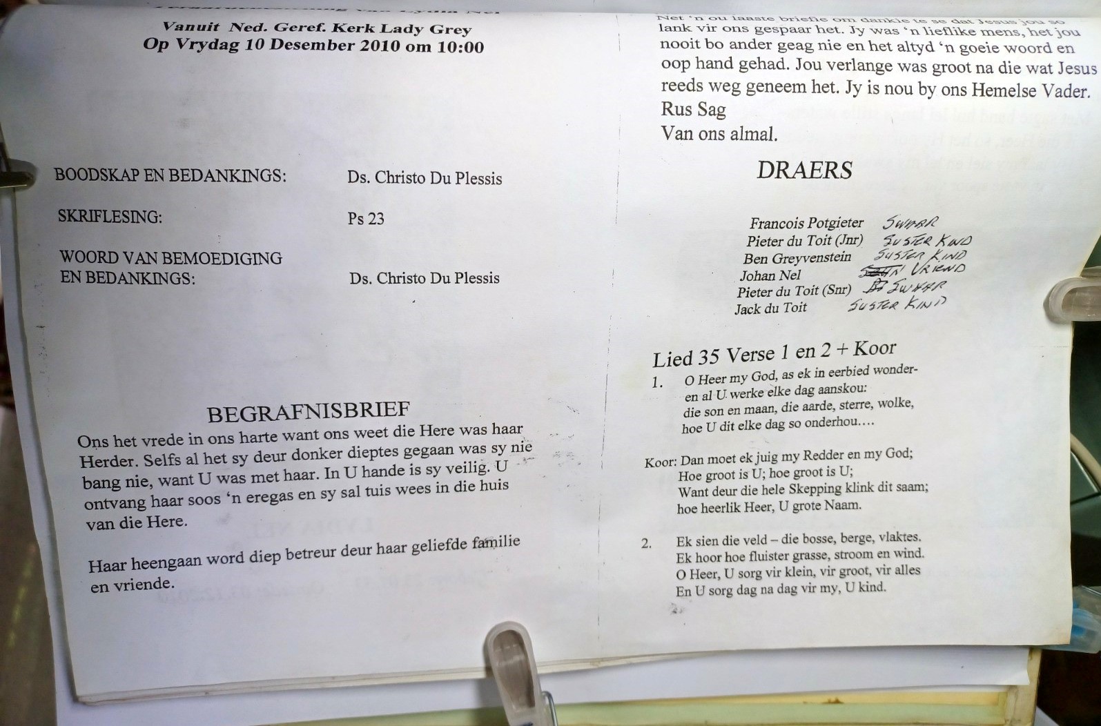 Funeral Programs / Begrafnisbriewe