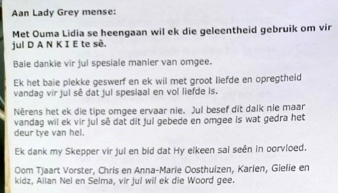 Funeral Programs / Begrafnisbriewe