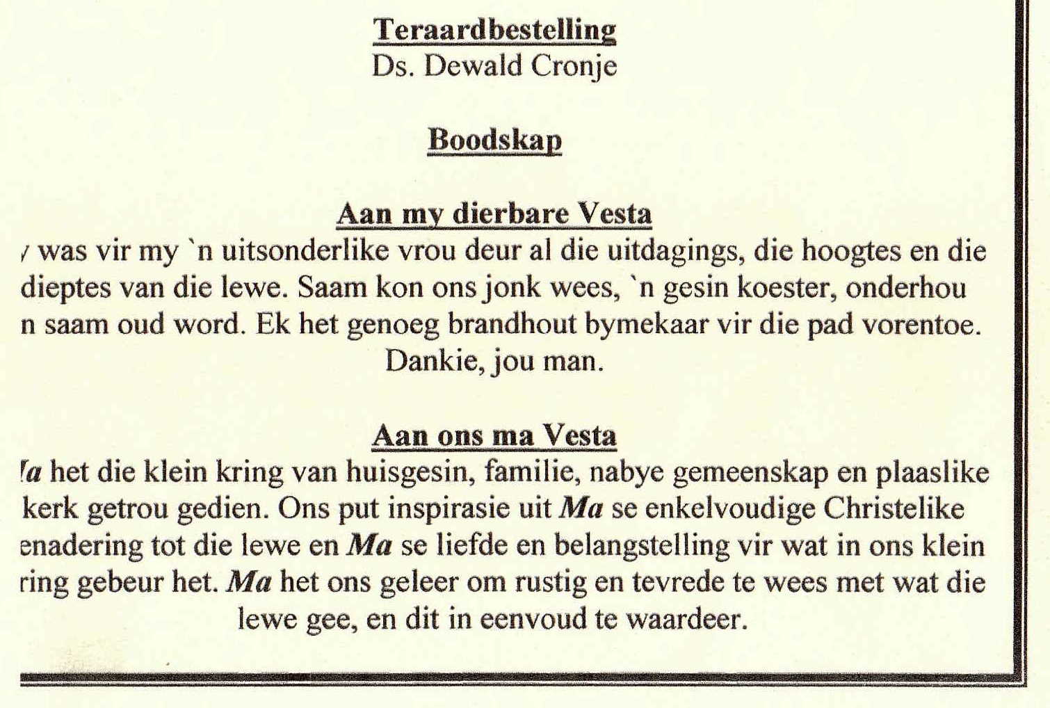 Funeral Programs / Begrafnisbriewe