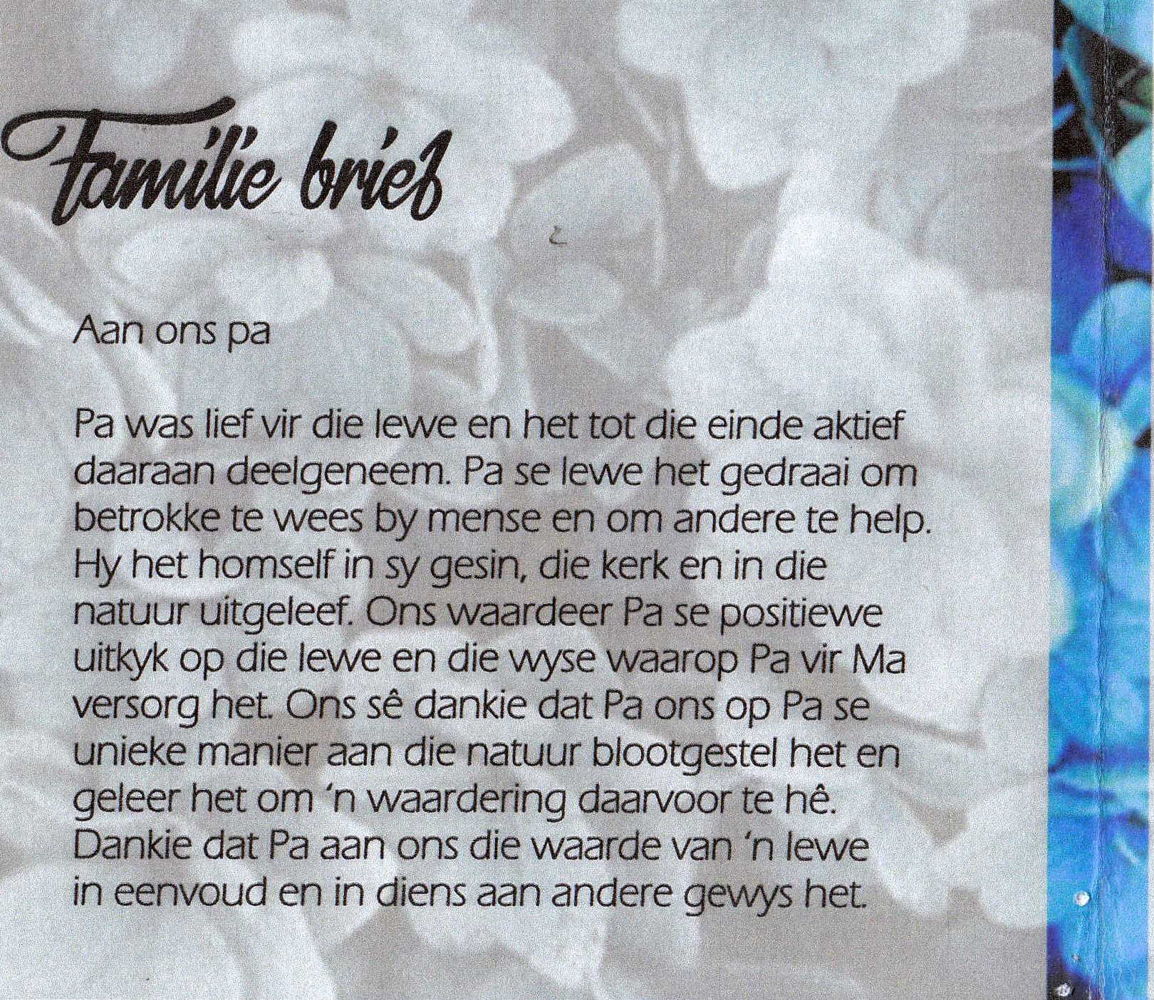 Funeral Programs / Begrafnisbriewe