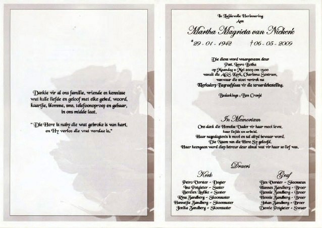 Funeral Programs / Begrafnisbriewe