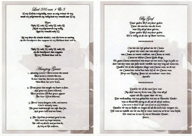 Funeral Programs / Begrafnisbriewe