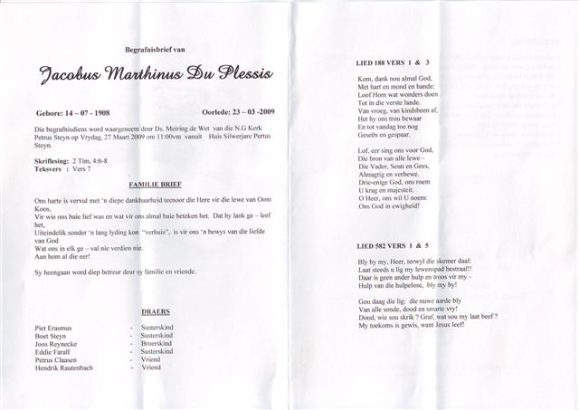 PLESSIS-DU-Jacobus-Marthinus-Nn-Koos.OomKoos-1908-2009-M