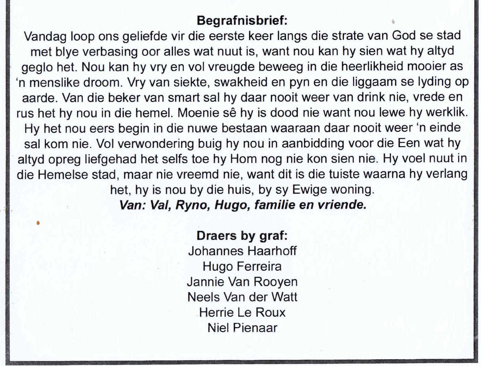 Funeral Programs / Begrafnisbriewe