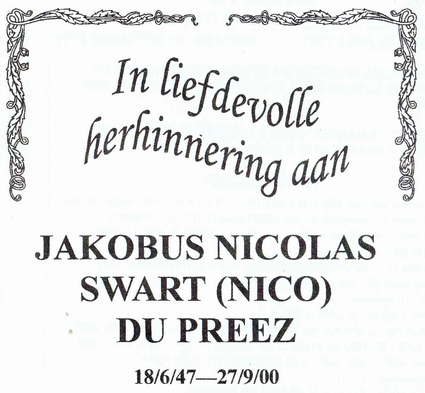 PREEZ-DU-Jakobus-Nicolas-Swart-Nn-Nico-1947-2000-M