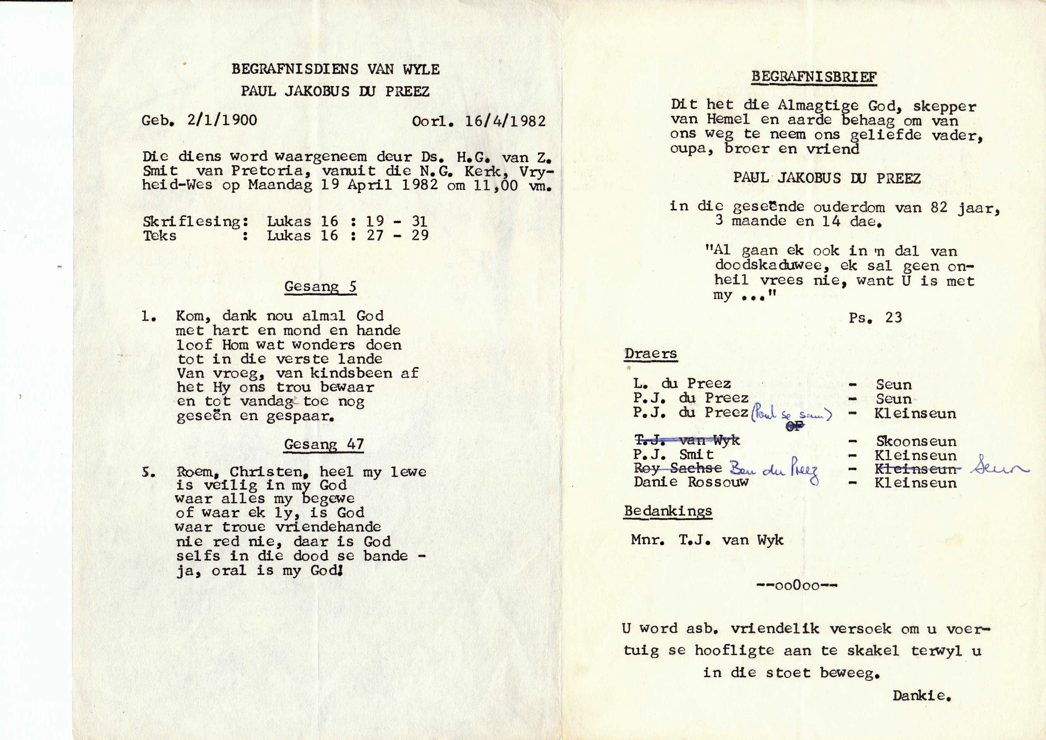 Funeral Programs / Begrafnisbriewe
