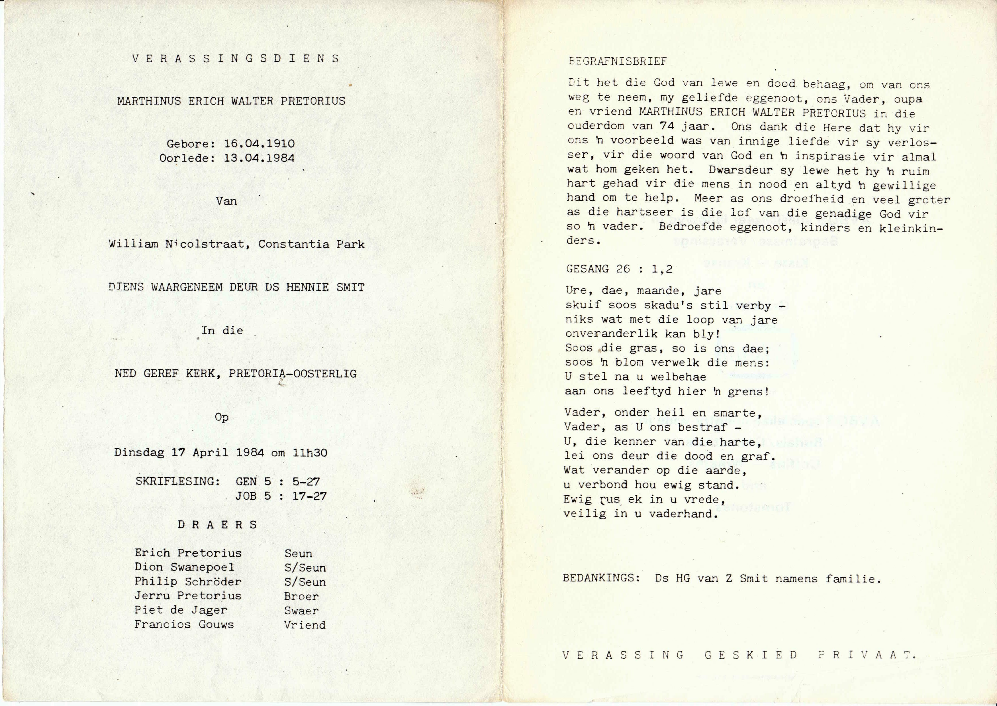 Funeral Programs / Begrafnisbriewe