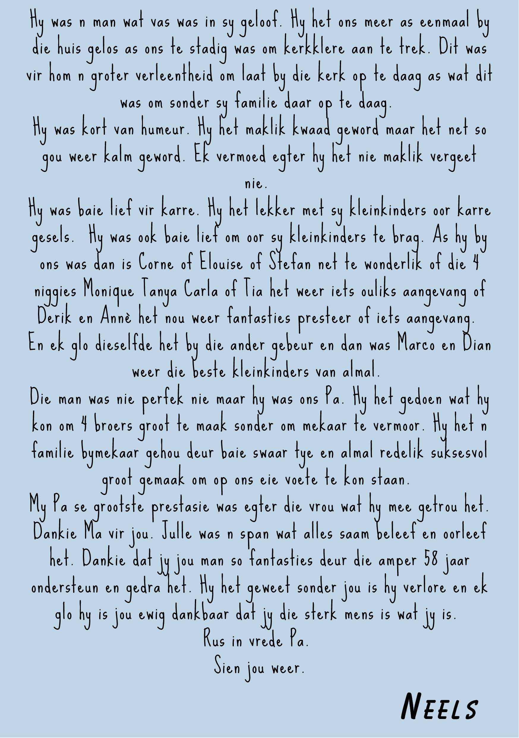 Funeral Programs / Begrafnisbriewe