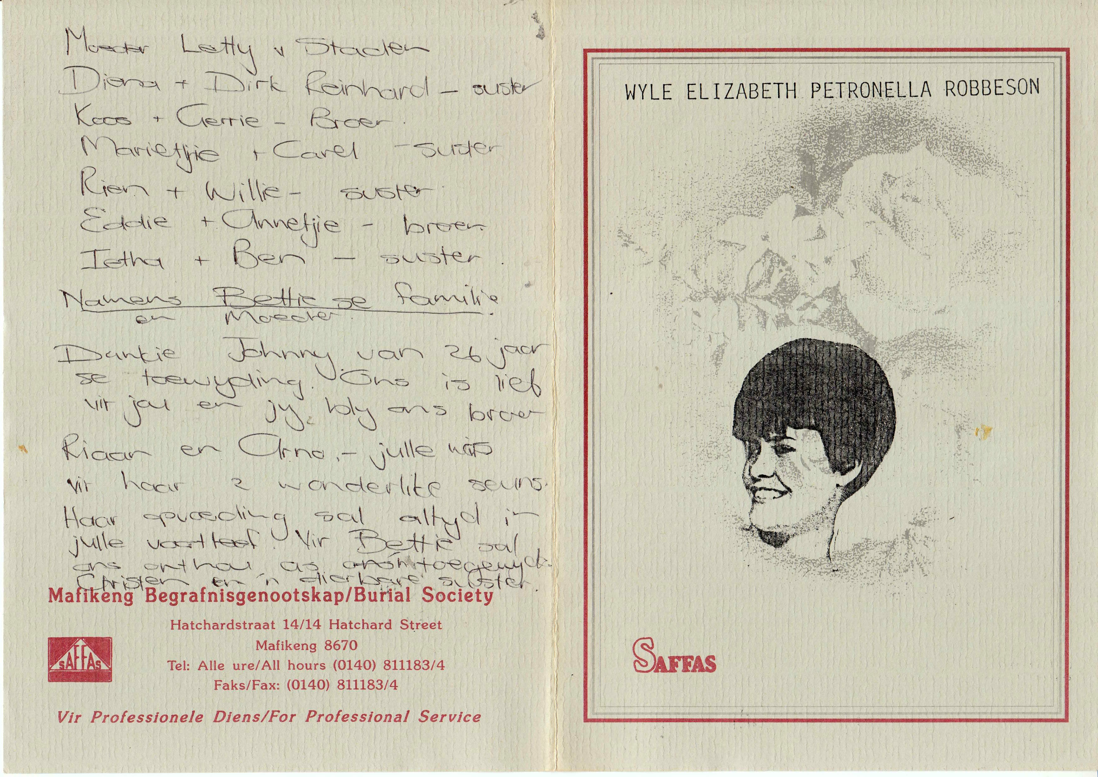 Funeral Programs / Begrafnisbriewe