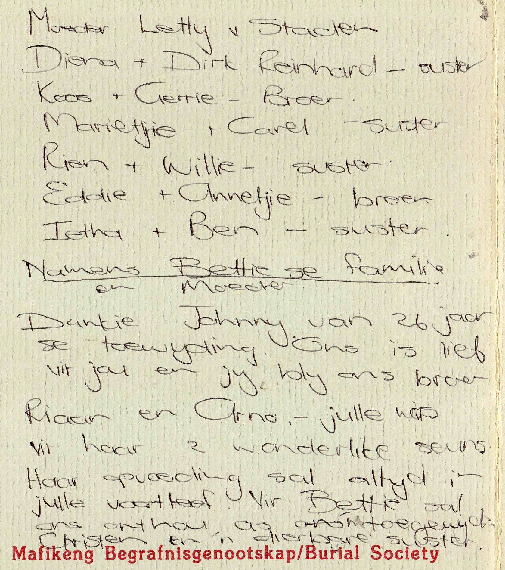 Funeral Programs / Begrafnisbriewe