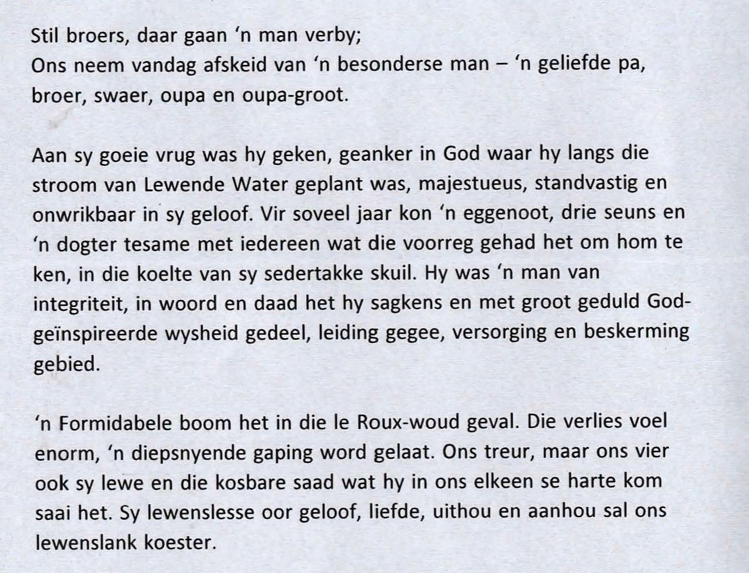 Funeral Programs / Begrafnisbriewe