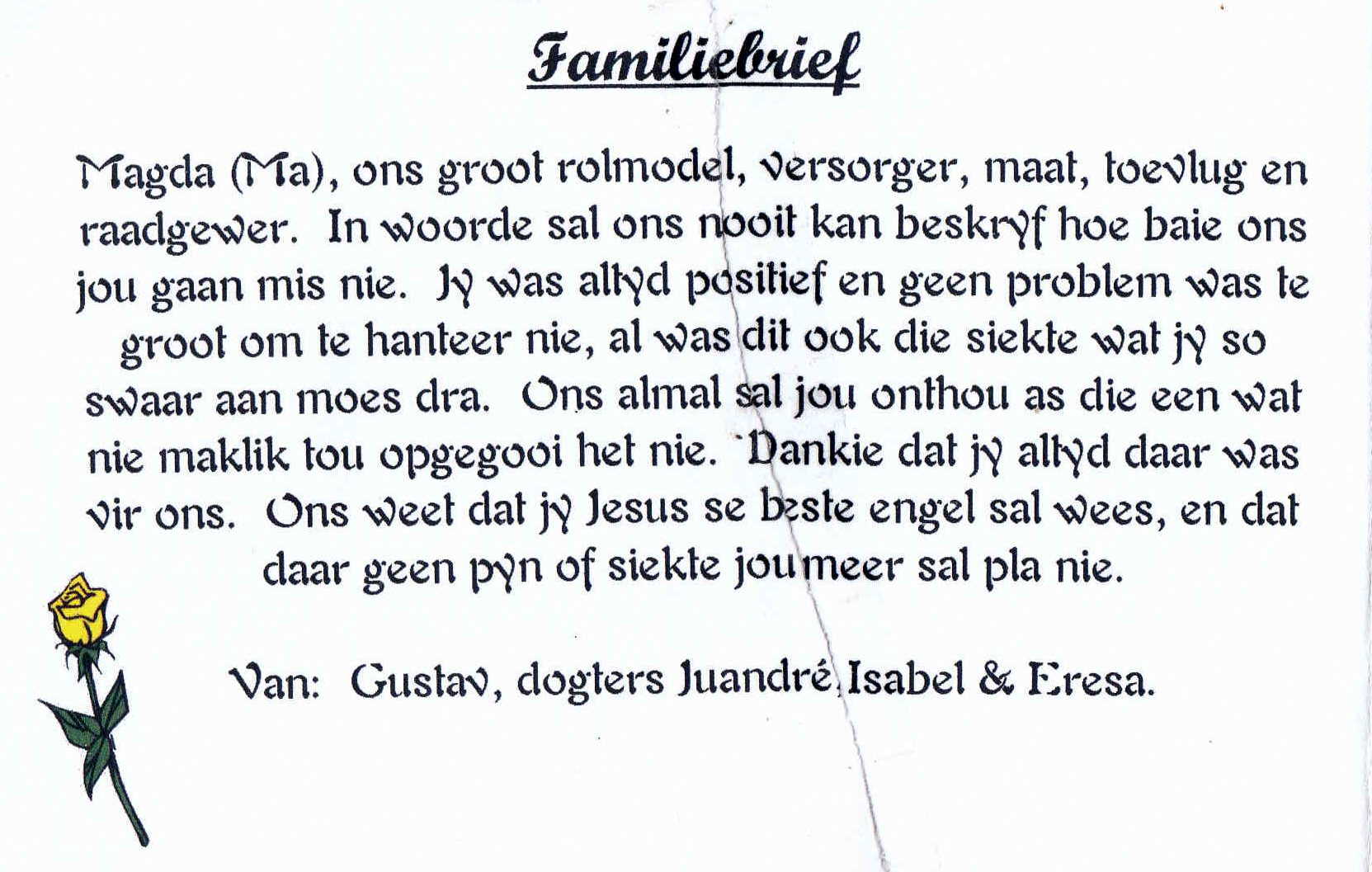 Funeral Programs / Begrafnisbriewe