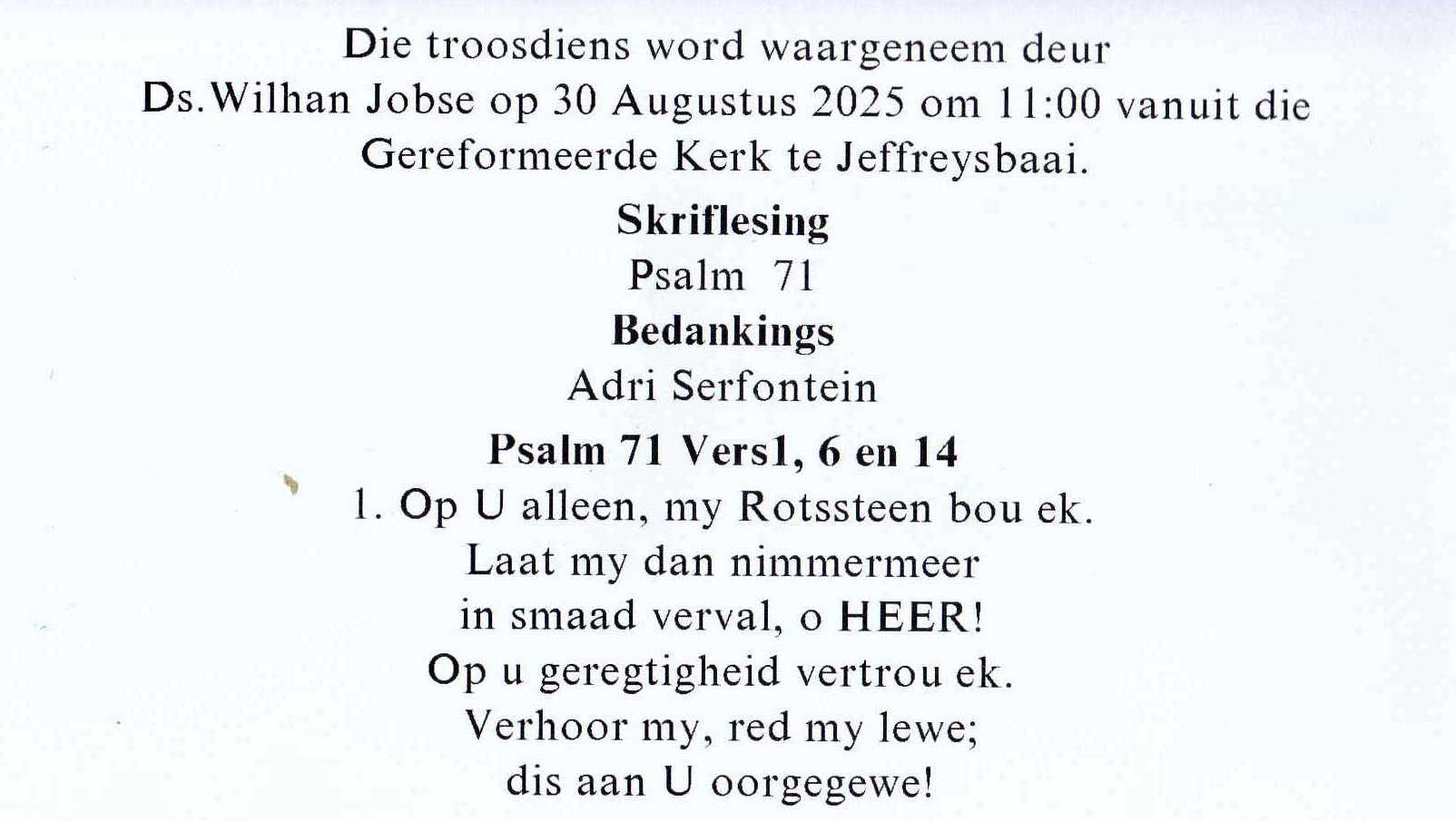 Funeral Programs / Begrafnisbriewe