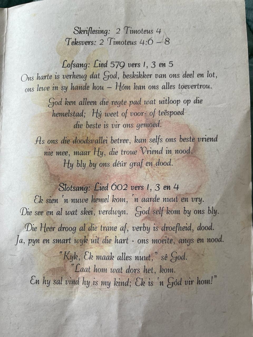 Funeral Programs / Begrafnisbriewe