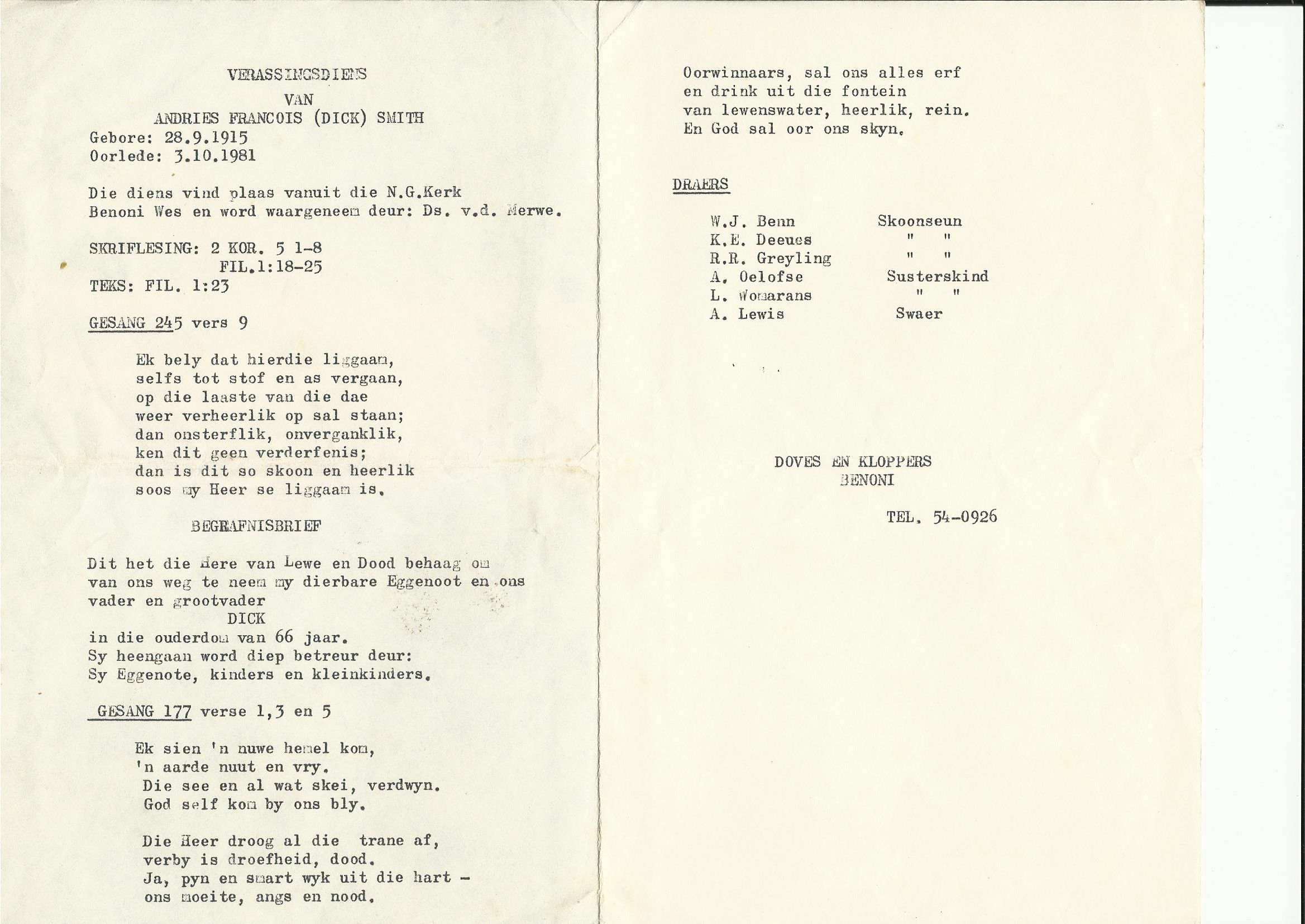 Funeral Programs / Begrafnisbriewe