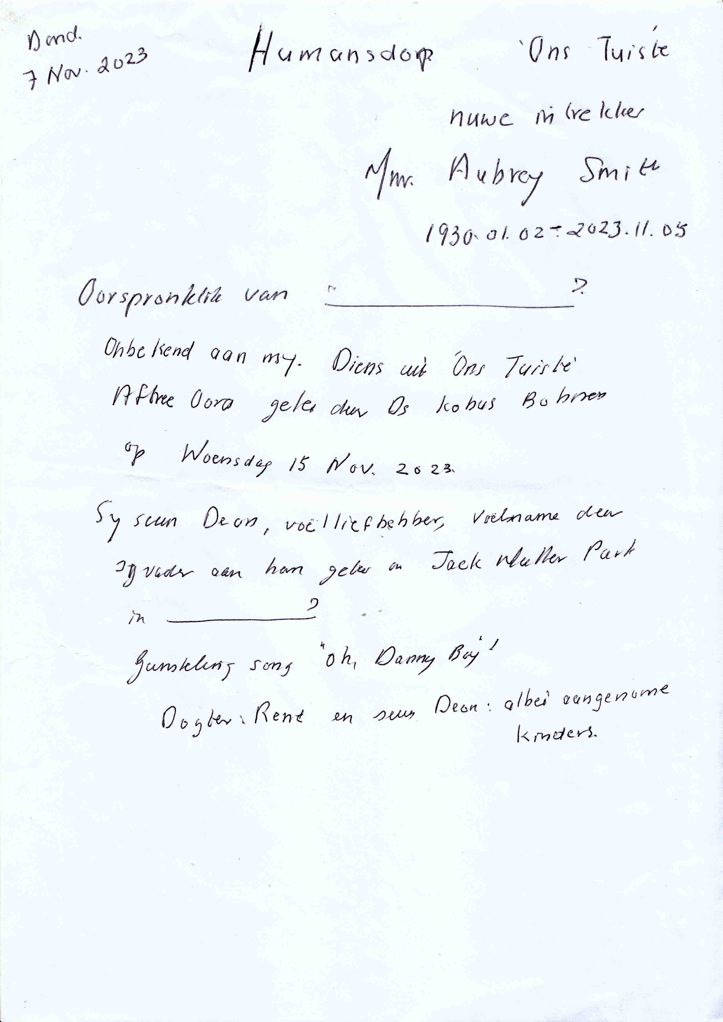 Funeral Programs / Begrafnisbriewe