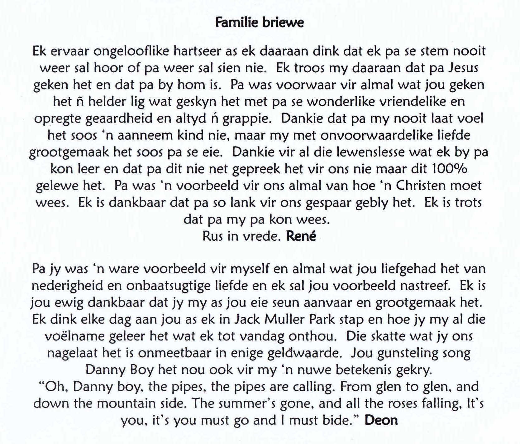 Funeral Programs / Begrafnisbriewe